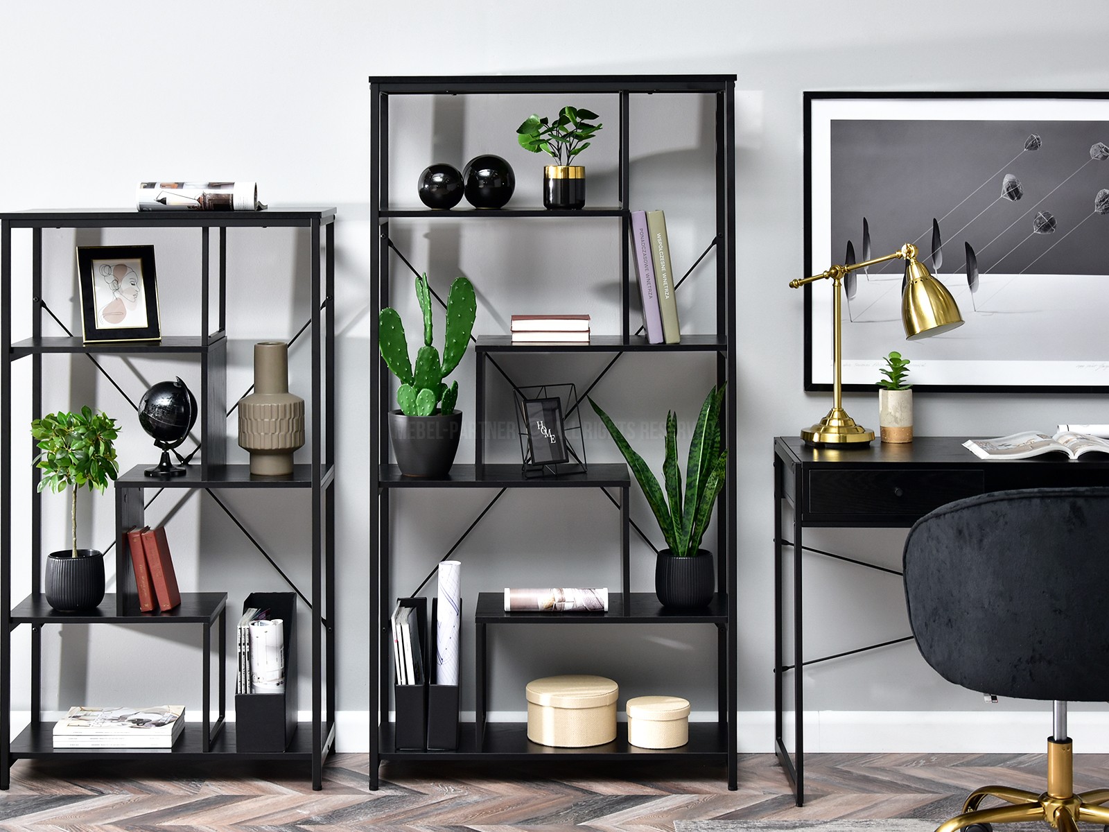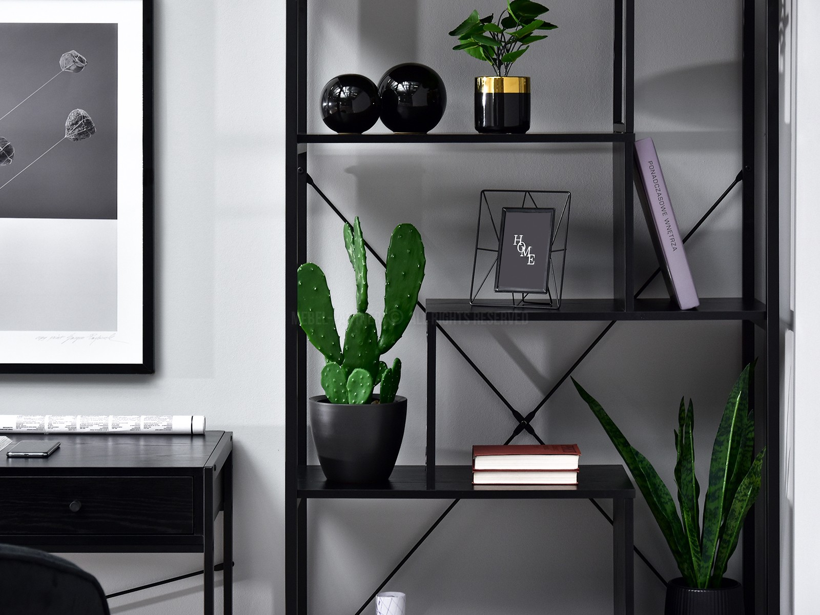 - Finisajul negru al raftului permite combinarea cu alte piese de mobilier, cum ar fi comode, dulapuri sau mese, pentru un decor armonios.