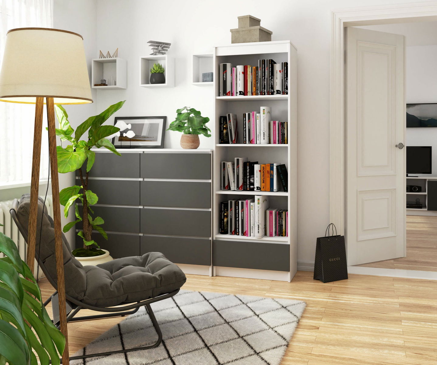 Am cumpărat tapet pentru peretele din spate ca să nu fie alb. Raftul este grozav :)