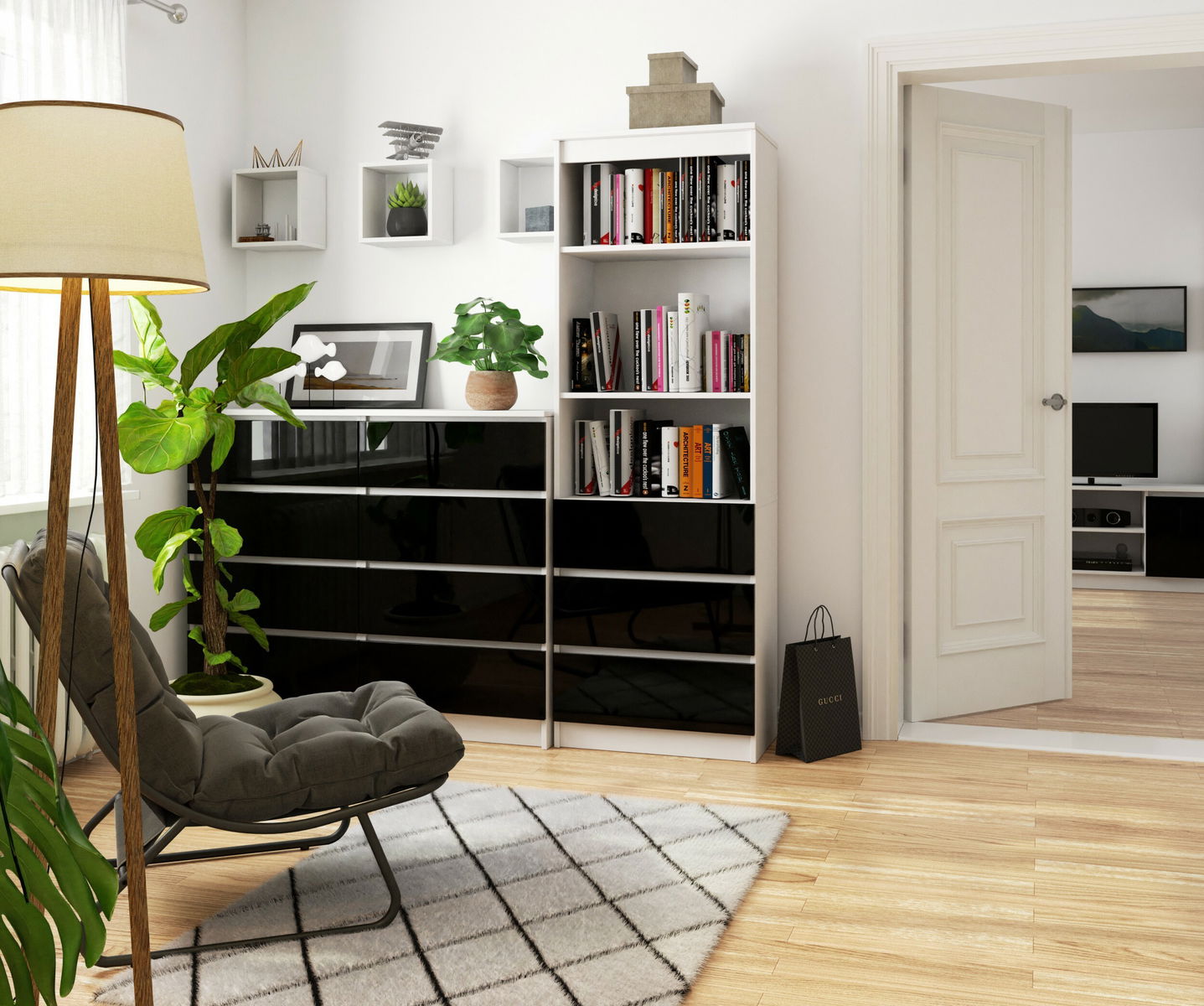 Raft Ravindra (alb + negru lucios )