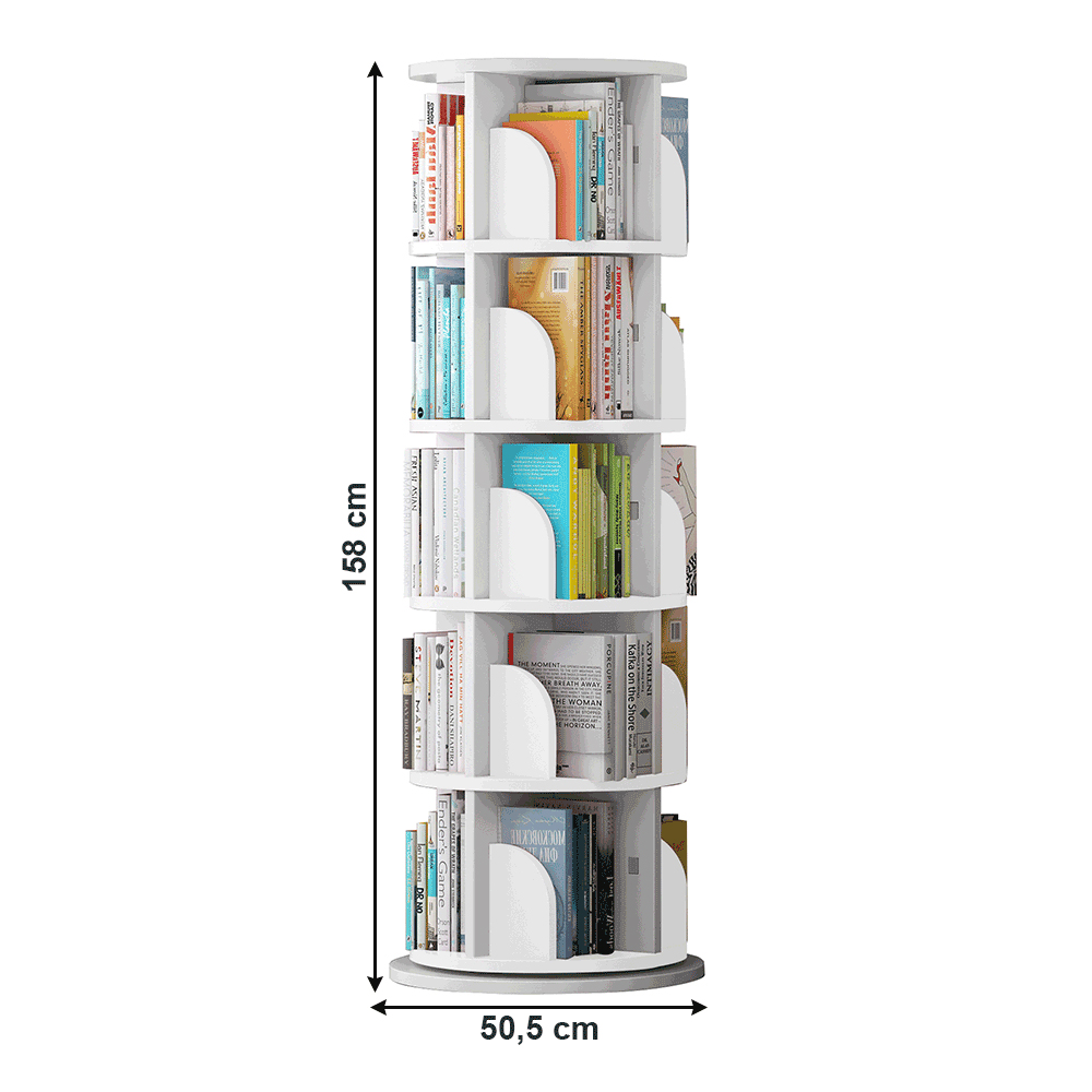 Raftul rotativ Alston TYP 2 este ideal pentru organizarea cărților, revistelor sau obiectelor decorative în diverse spații. Fabricat din MDF de înaltă calitate, acest mobilier modern măsoară 158 cm în înălțime și 50,5 cm în adâncime, oferind spațiu generos pe cele 5 polițe robuste, fiecare cu o capacitate de până la 5 kg.