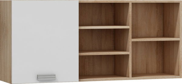 Raft de perete din 3 părți cu dulap pe partea stângă. Ușile sunt pe versiune color lucioasă. La alegere dintre mai multe versiuni color disponibile.