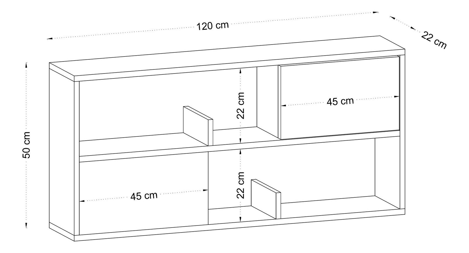 lățime: 120 cm înălțime: 50 cm adâncime: 22 cm