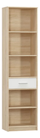 Dulap practic cu rafturi, de un design simplu, potrivit pentru o cameră de copii sau tineret. Are cinci rafturi deschise și un sertar mic. Este potrivit pentru cărți, decorațiuni sau alte accesorii. Versiunea color a mobilierului este stejar sonoma.