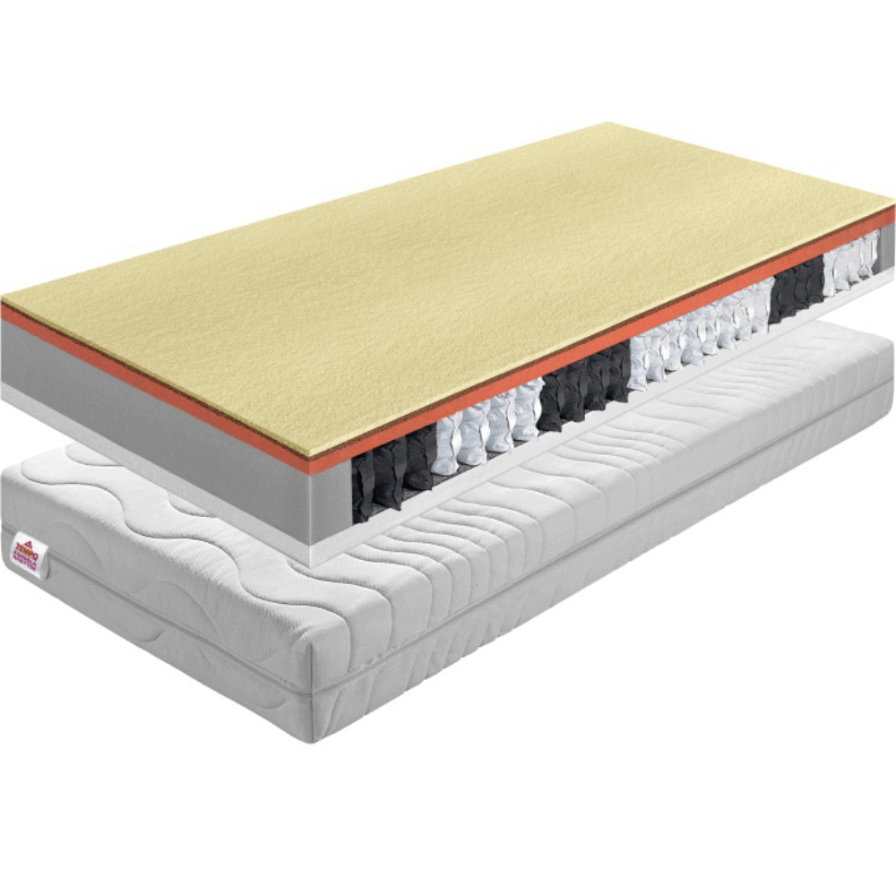 Saltea din arcuri individuale, cu arcuri fabricate din material de calitate înaltă, de producătorul german AGRO. Conține placă de nucă de cocos care este fabricată din fibre naturale de nucă de cocos. Salteaua este cu două fețe, o parte de iarnă și o parte din vară.