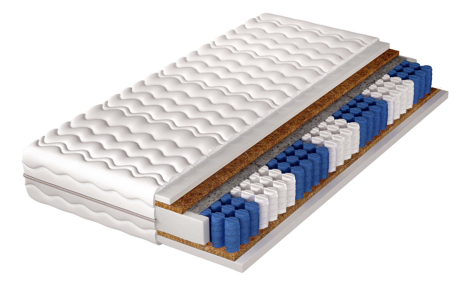 Cele 7 zone se caracterizează prin faptul că, fiecare arc este aranjat în latex separat. Arcurile nu sunt interconectate, ceea ce face ca fiecare să lucreze separat, independent unul față de celălalt. Aceasta elimină îndoirea suprafeței mari a saltelei cu presiune pe suprafața mică. La dormirea pe această saltea nu veți simți mișcarea și răsucirea celeilalte persoane. Salteaua cu arcuri individuale o putem eticheta ca fiind o saltea liniștită, deoarece arcurile sunt amplasate separat și prin urmare, nu scot nici un sunet nedorit. Corpul uman îl putem împărți în șapte zone, în care fiecare necesită o altă forță de susținere în timpul întinderii. De aceea am creat o saltea care copiază perfect nevoile corpului. Pentru a asigura un confort ridicat în timpul somnului, arcurile sunt de diferite înălțimi și de duritate. Toate materialele folosite pentru fabricarea saltelei au fost alese în așa fel încât să maximizeze eliminarea riscului de energie. . Salteaua este așezată pe o placă de lemn, care este fabricată din HDF (fibre panou cu densitate înaltă) cu o grosime de 3 mm. Cadrul se caracterizează prin flexibilitate ridicată, rezistență, calitate înaltă și durabilitate. Cadrul oferă un sprijin excelent și mărește confortul somnului.