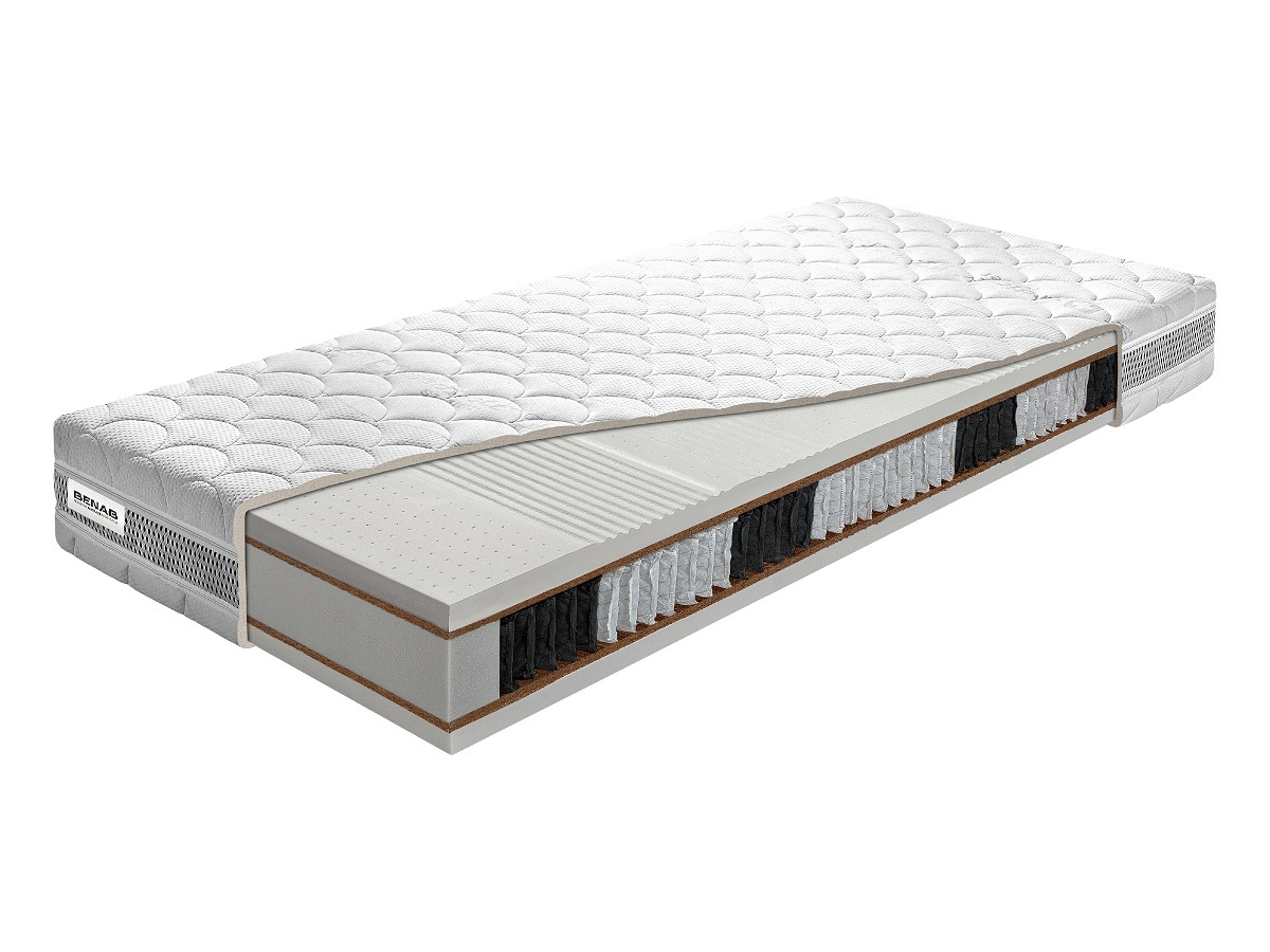 Saltea ortopedică cu înălțime de 24 cm cu arcuri individuale. , fibră de nucă de cocos pe două fețe și spumă de latex perforată. Miezul copiază perfect forma corpului uman. Proprietățile elastice excelente ale latexului asigură stabilitatea saltelei.