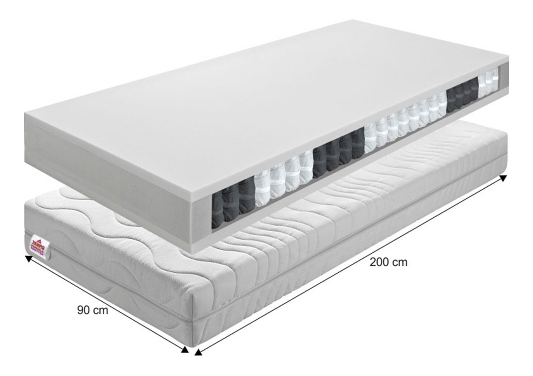 Saltea din arcuri individuale, cu arcuri fabricate din material de calitate înaltă, de producătorul german AGRO. Conține placă de nucă de cocos care este fabricată din fibre naturale de nucă de cocos. Salteaua este cu două fețe, o parte de iarnă și o parte din vară.