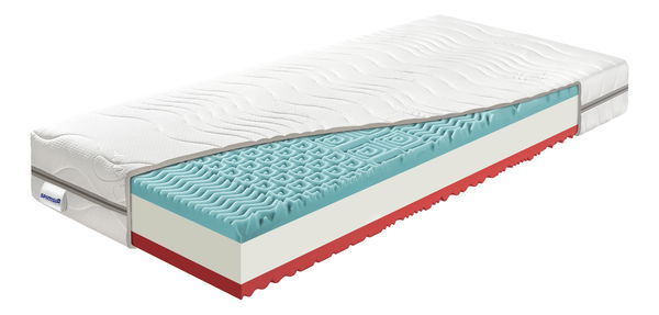 Bucurați-vă de un somn liniștit pe salteaua Spimsi Basic. Este o saltea tip sandwich cu profilare cu 7 zone, cu două fețe și rigiditate variabilă din spumă HR și PUR de înaltă calitate, în combinație cu un miez de spumă PUR de înaltă calitate pentru o mai bună întărire a saltelei.