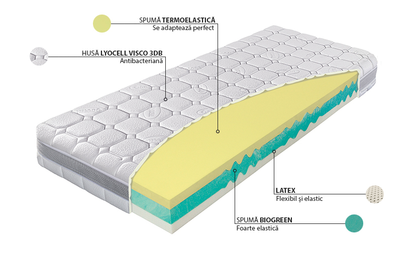 Spumă, care își schimbă duritate pe baza căldurii și reacționează la căldura corpului, în timp ce se îndoaie la locurile cele mai necesare.