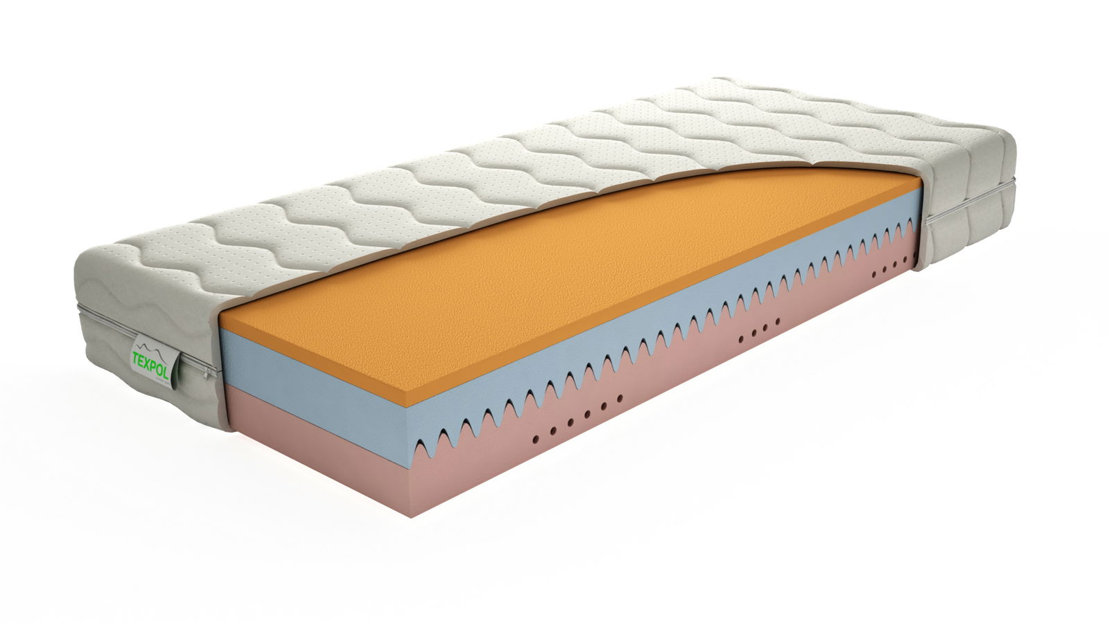 Salteaua Dream Lux este realizata din 3 straturi de spuma cu densitati de 28, 30 si 50 kg/m3. Partea superioară este fabricată din spumă cu memorie VISCO, a cărei densitate este de 50 kg/m3. Partea mijlocie de susținere a saltelei este formată din spumă pur cu o densitate crescută de 30 kg/m3, datorită căreia această saltea este potrivită și pentru persoane cu greutate mai mare. Profilare specială în 7 zone - asigură o circulație excelentă a aerului și o ventilație a umidității absorbite. În combinație cu husa aleasă, somnul pe această saltea nu este atât confortabil precum și sănătos.