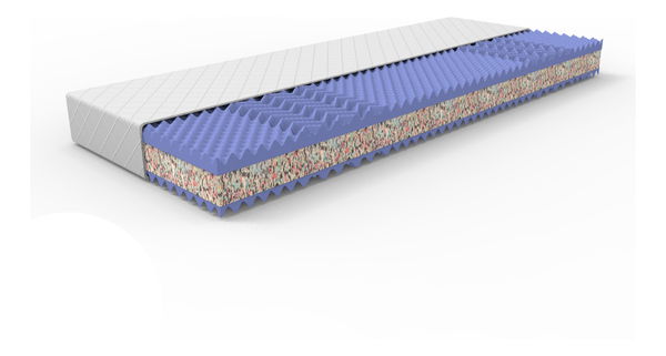 Saltea sandwich confortabilă cu fașă dublă, realizată din spumă PUR de înaltă calitate și spumă RE renovată. Profilarea dublă pe 5 zone contribuie la o mai bună relaxare în timpul somnului.