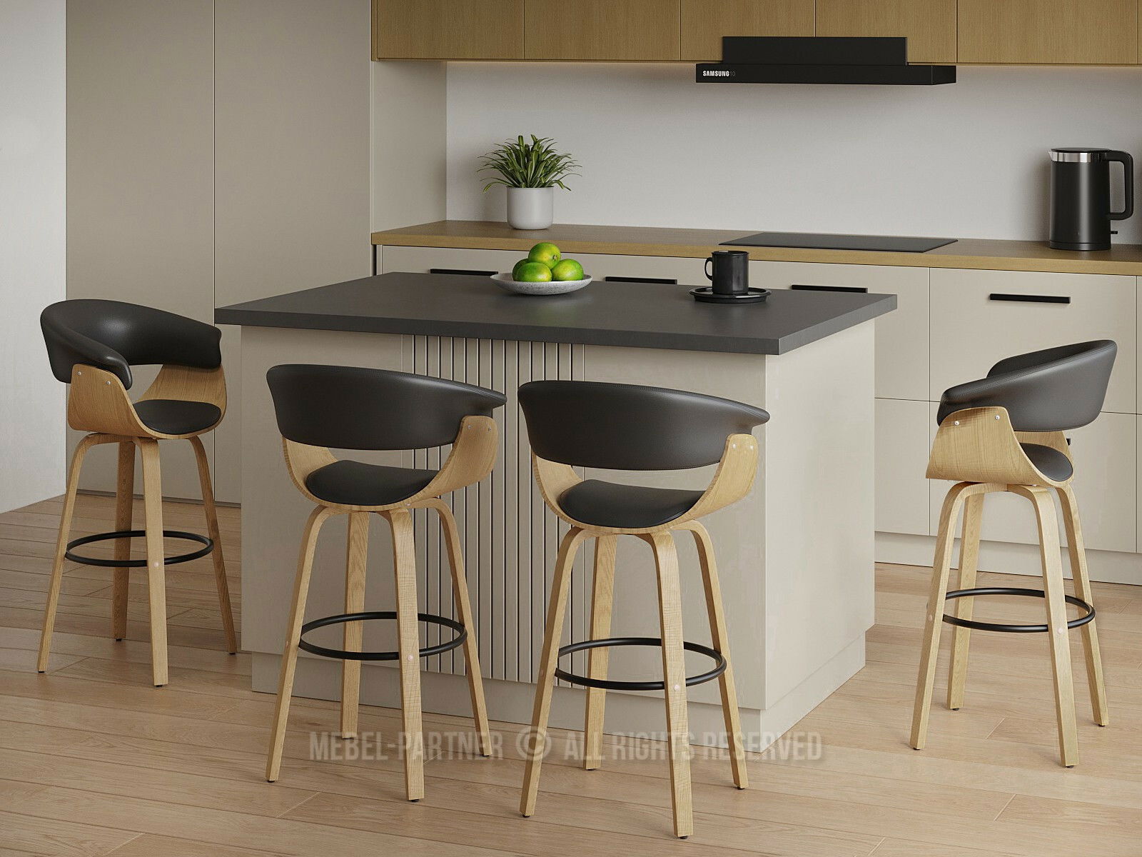 Scaun bar Elynah 75 (negru + stejar)