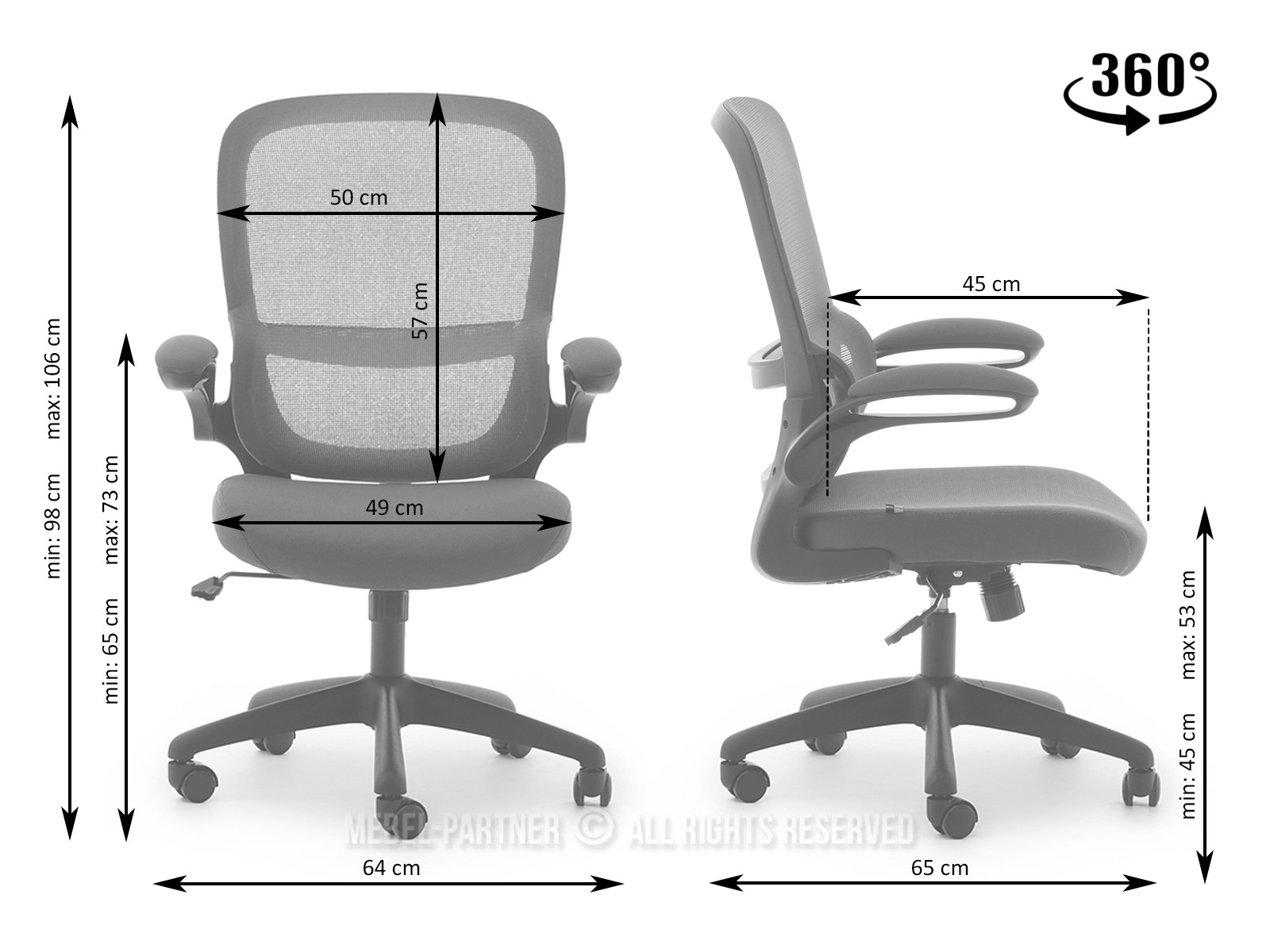 șezut rotativ, mânere: da, baza centrală cu roți, înălțime reglabilă, cotiere rabatabile