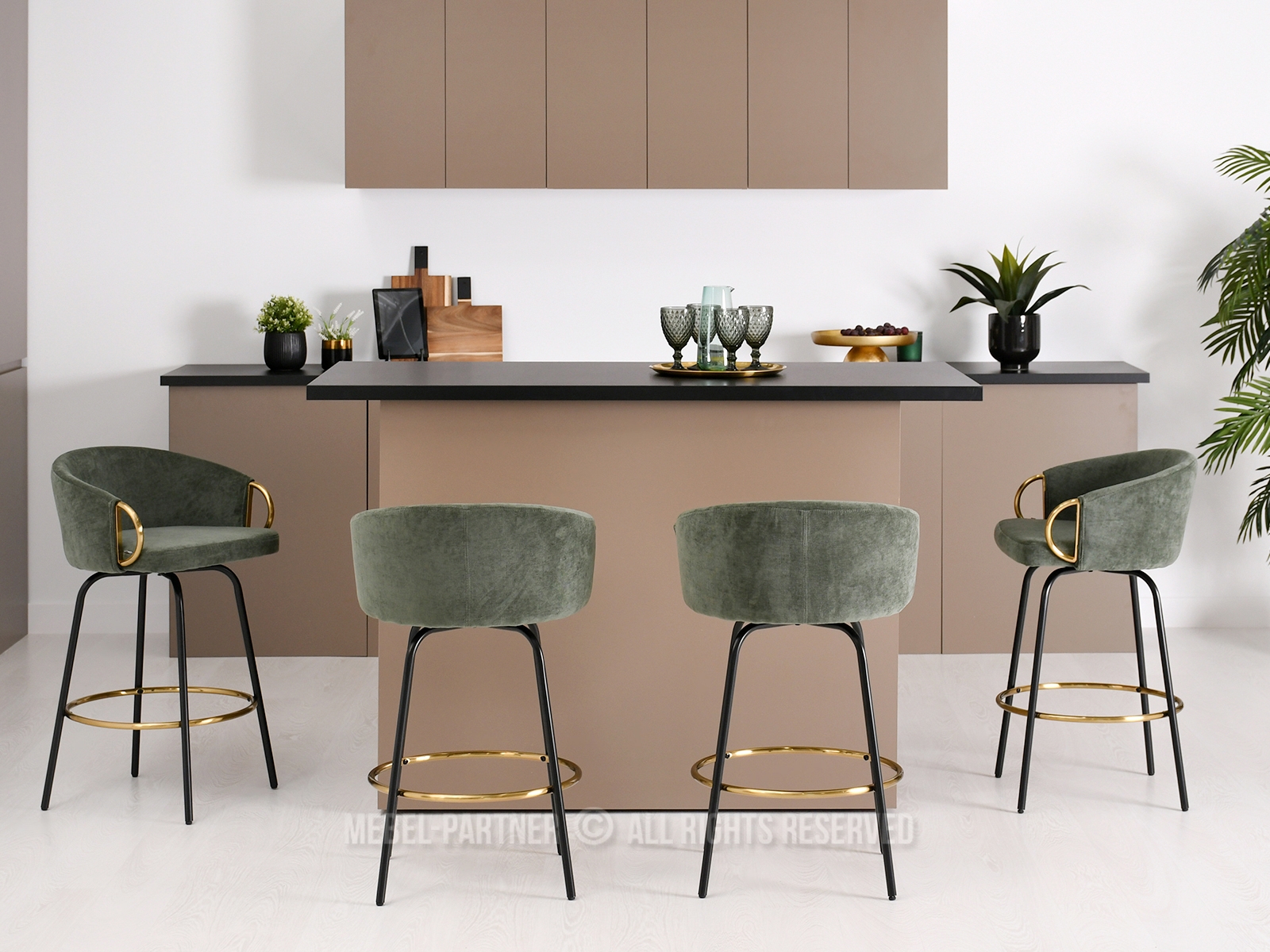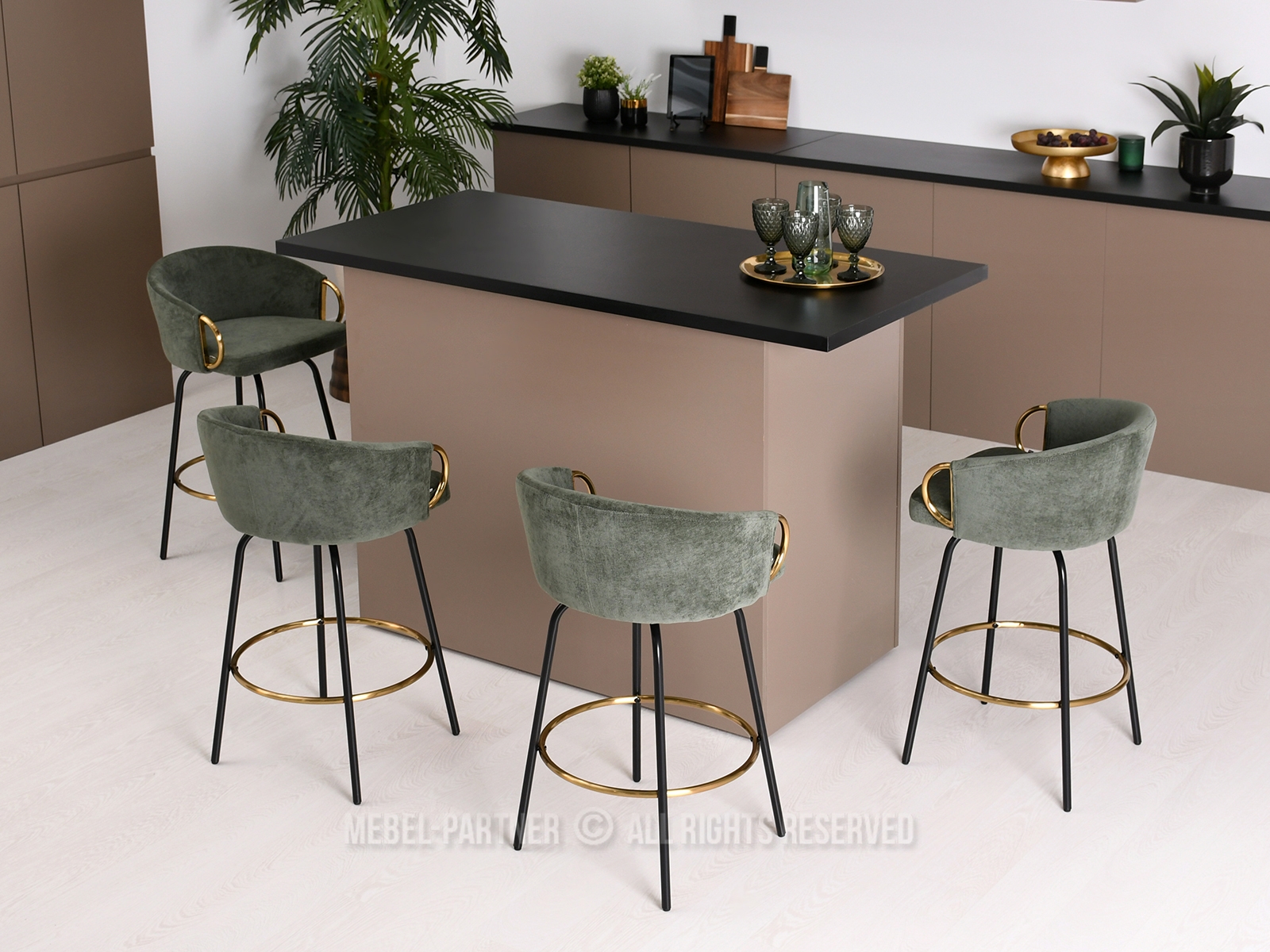 Face parte din categoria scaune înalte, fiind ideal pentru momentele petrecute la bar sau insula din bucătărie. Oferă un echilibru între estetică plăcută și rezistență în timp, fiind o soluție excelentă pentru diverse spații.
