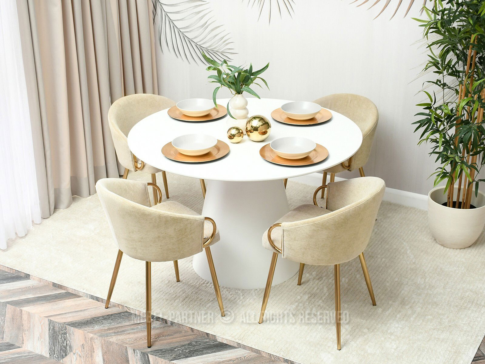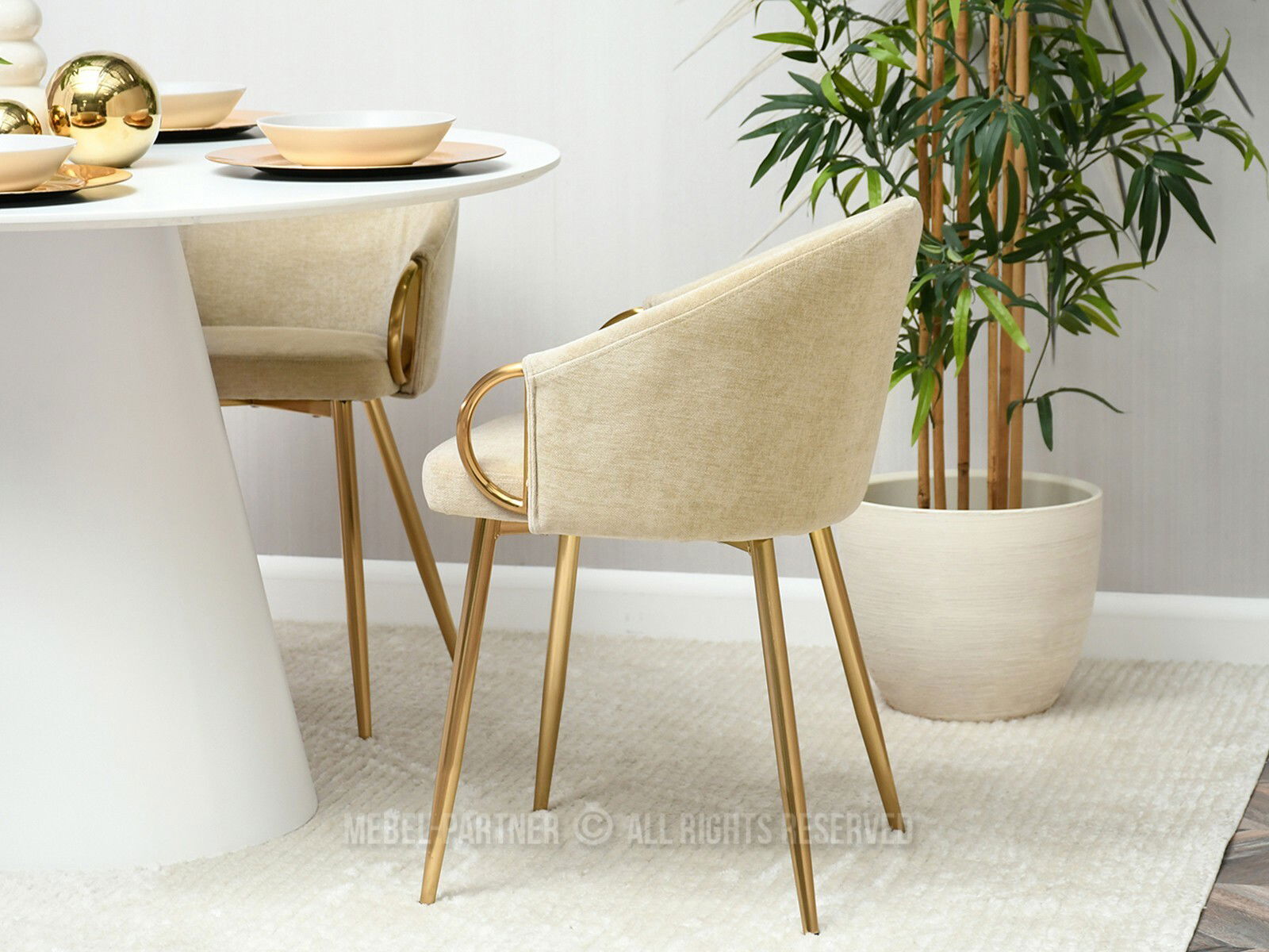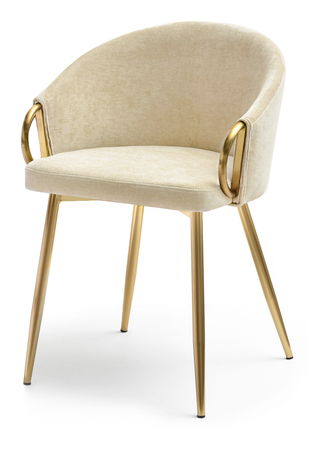 Scaunul Carma K, în nuanțe delicate de crem și detalii aurii, este alegerea ideală pentru orice spațiu modern ce îmbină confortul cu un design rafinat. Cu picioarele subțiri metalice, placate cu un finisaj auriu strălucitor, această piesă adaugă luminozitate și stil oricărei încăperi, fie că îl integrezi într-un dining sofisticat, un birou contemporan sau un living cu accente clasice reinterpretate.