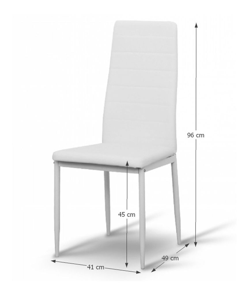 Scaun de sufragerie care ma înviora fiecare sufragerie. Cadrul este metalic și confortul este ridicat li datorită spătarului. Se livrează cu tapițerie din piele ecologică albă.