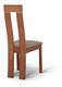 Scaun elegant de sufragerie cu picioare inferioare largi. Tapițeria șezutului este din piele ecologică pe versiunea color bej. Este disponibil pe versiunea color de cireș, cadrul find fabricat din lemn masiv de fag. Înălțimea de ședere este de 48 cm.