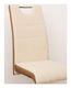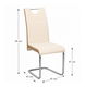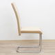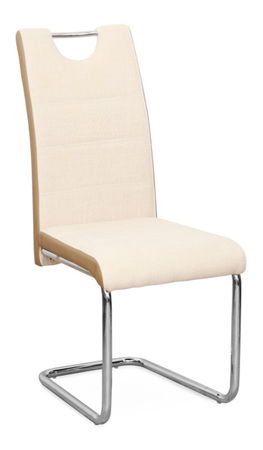 Scaunul Izma modern este cusut cu un material bej, iar părțile laterale sunt din piele ecologică. Picioarele sunt cromate.