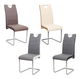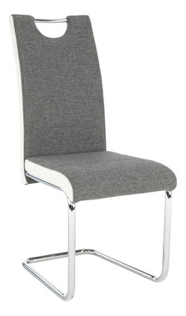 Scaunul Izma modern este cusut cu un material bej, iar părțile laterale sunt din piele ecologică. Picioarele sunt cromate.