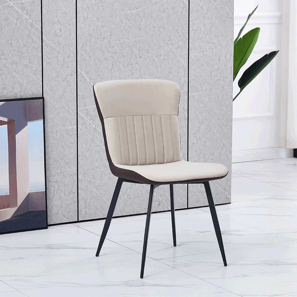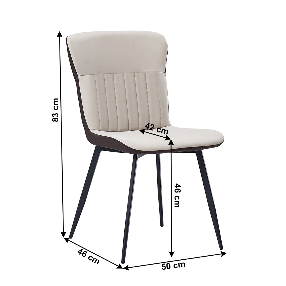 Scaun de sufragerie confortabil de stil cu textil și piele ecologică pe picioare metalice.