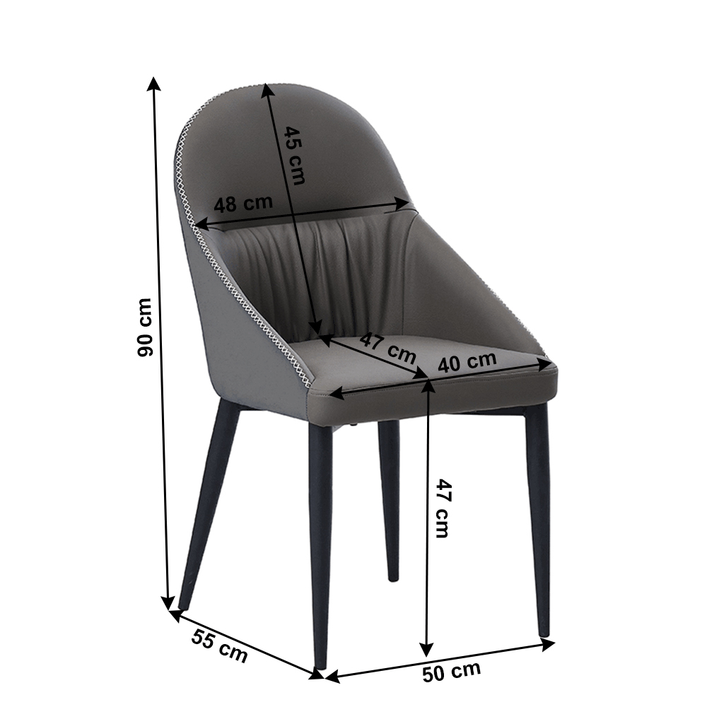 Scaun de sufragerie confortabil de stil cu textil și piele ecologică pe picioare metalice.