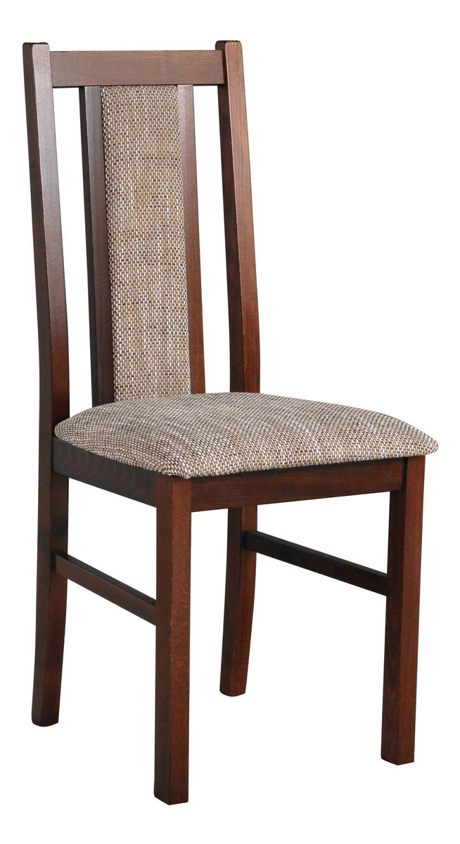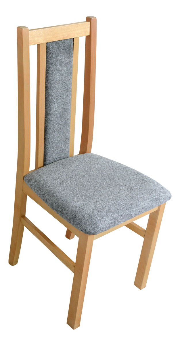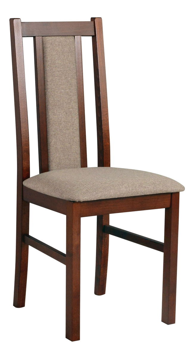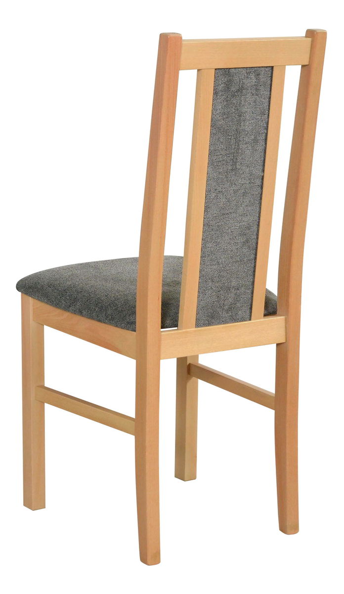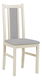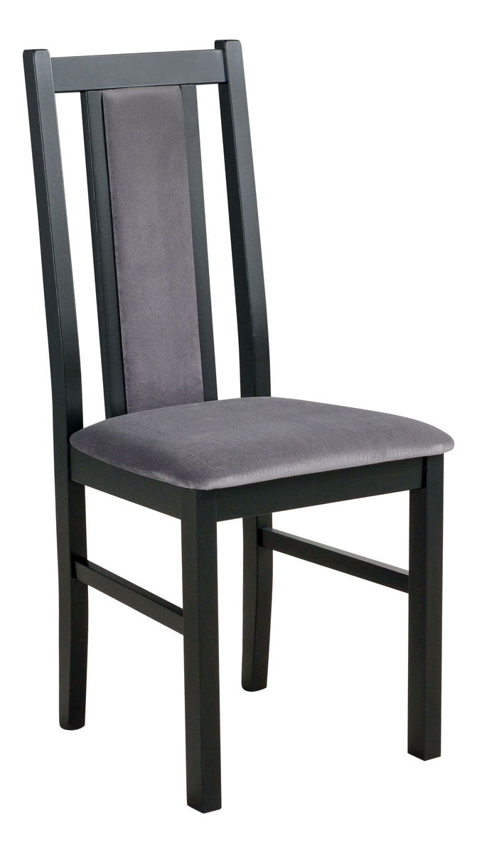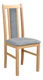 Scaunul are un spătar decorativ și tapițat. Spătarul îngust și șezutul sunt tapițate cu stofă (sau piele ecologică).