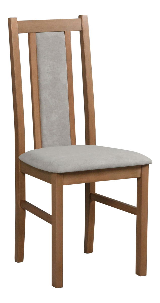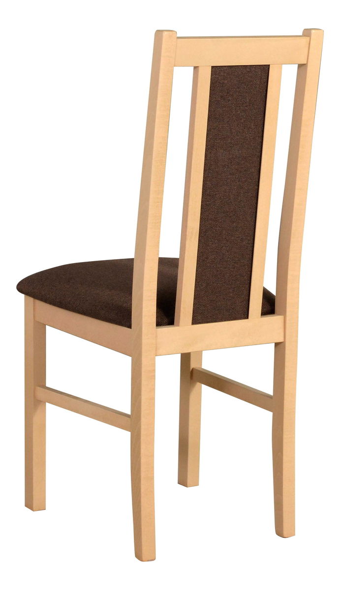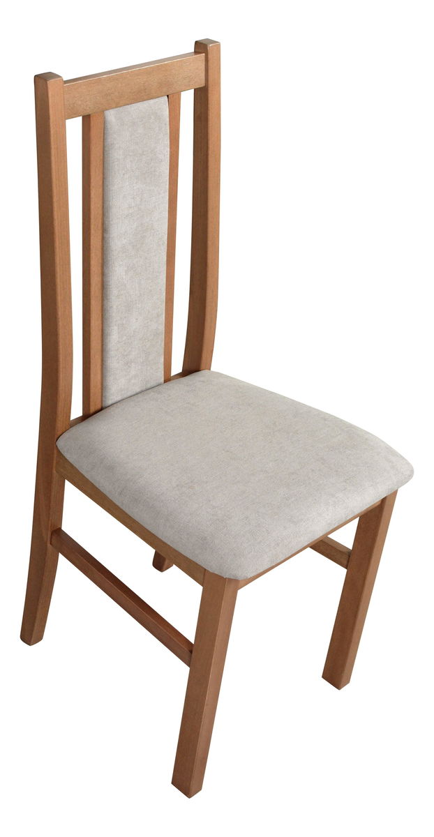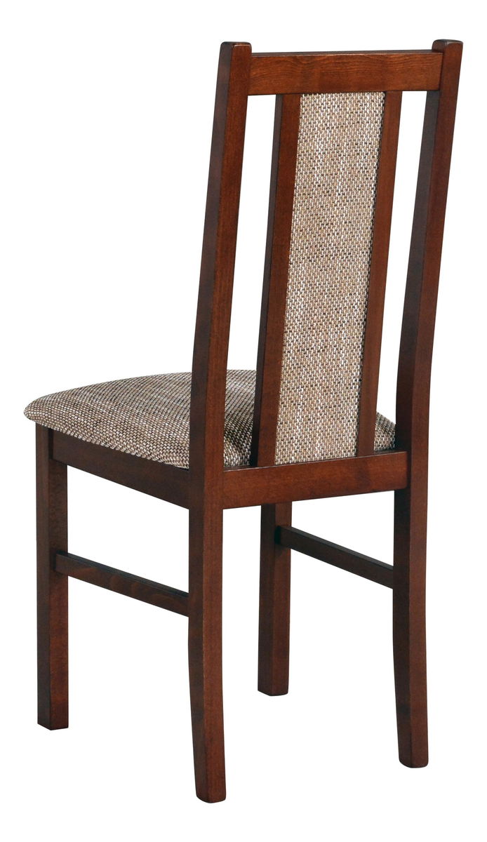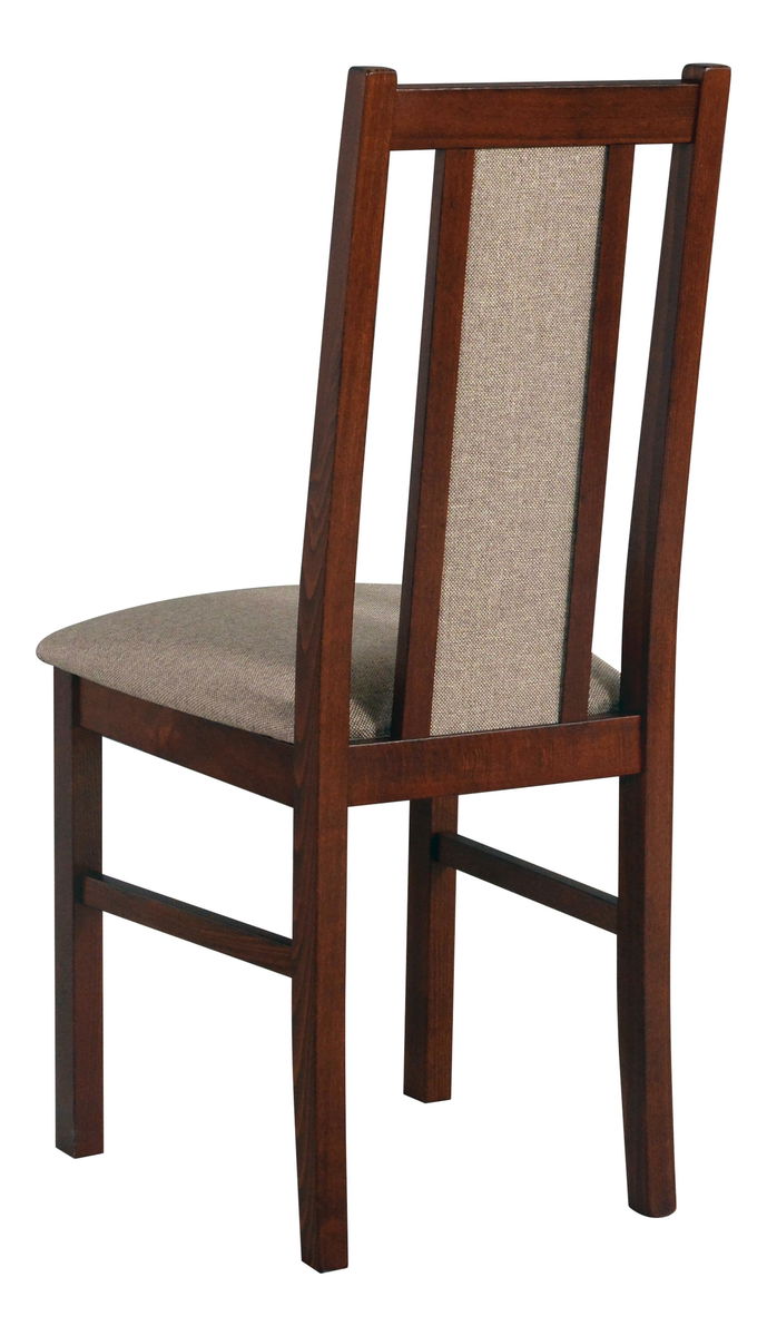 Scaunul are un spătar decorativ și tapițat. Spătarul îngust și șezutul sunt tapițate cu stofă (sau piele ecologică).