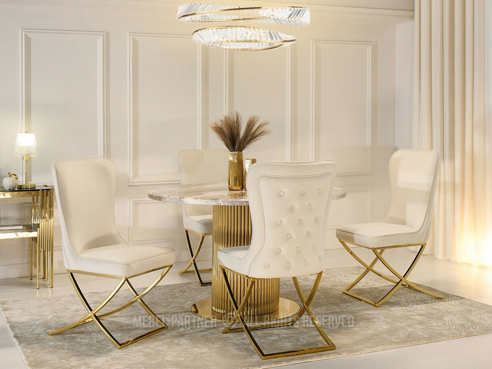 Masă de sufragerie Hillary (marmură bej albă + negru) (pentru 8 și mai multe persoane)