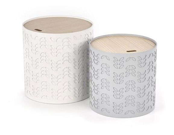Set 2 buc. masă de cafea Alva (Alb + Gri + Lemn natural)