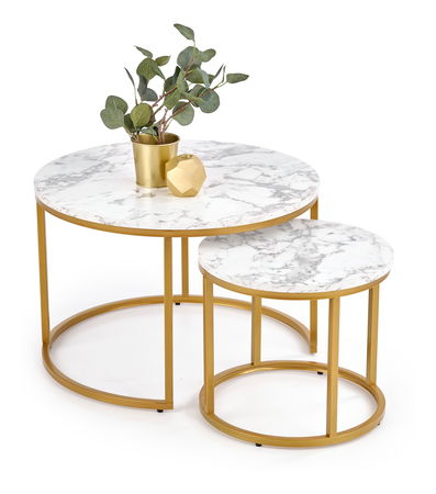 Setul format din 2 mese de conferință Paola este soluția ideală pentru un living modern sau un spațiu de relaxare rafinat. Cu blat oval realizat din MDF laminat cu finisaj marmorat și picioare metalice aurii, aceste mese combină durabilitatea cu un design sofisticat, potrivindu-se perfect în categorii precum mobilier living, mobilier dormitor sau chiar mobilier pentru birou. Formele lor discrete și elegante transformă aceste piese în elemente versatile, ușor de integrat în decoruri minimaliste, contemporane sau clasice.