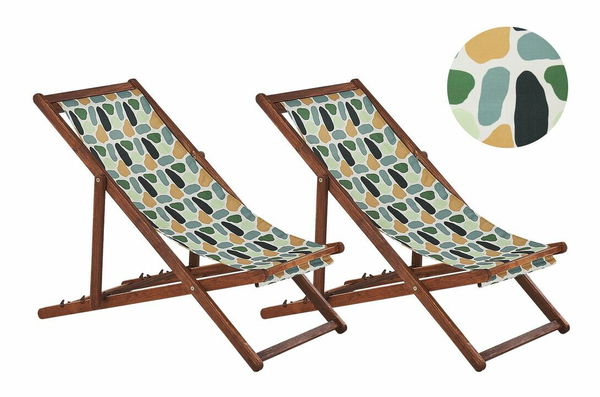 Set 2 buc șezlong de grădină cu huse de rezervă Antio (lemn deschis + model multicolor)
