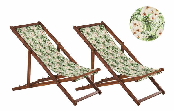 Set 2 buc șezlong de grădină cu huse de rezervă Antio (verde + roz cu model)