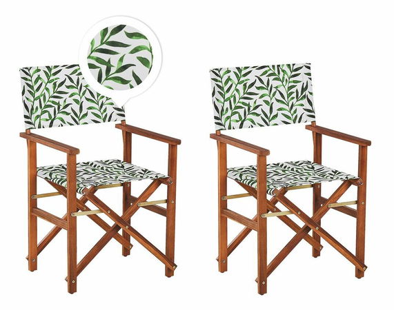 Set 2 buc șezlong de grădină cu huse de rezervă Ciala (lemn închis + model frunze)