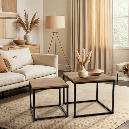 Set 2 măsuțe de cafea Climas (stejar auriu + negru)
