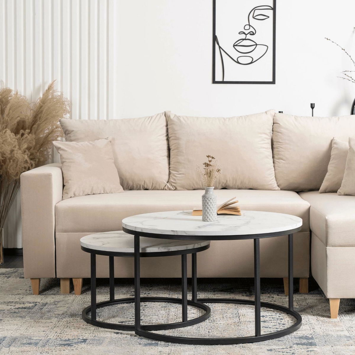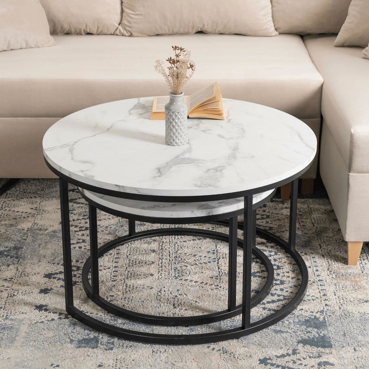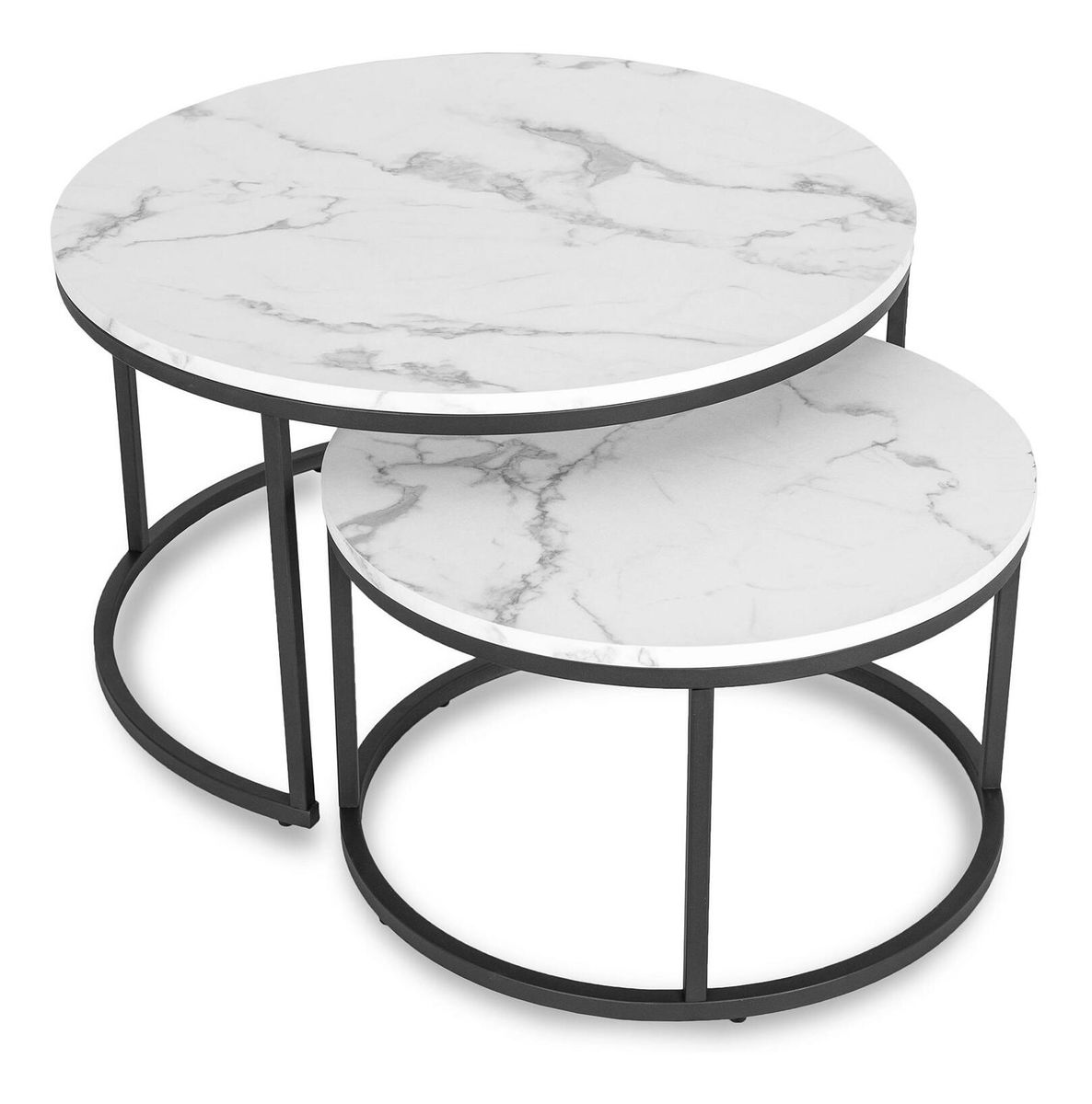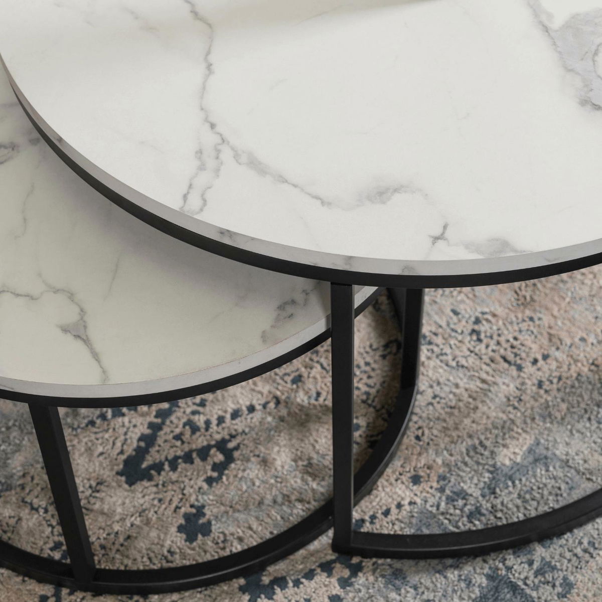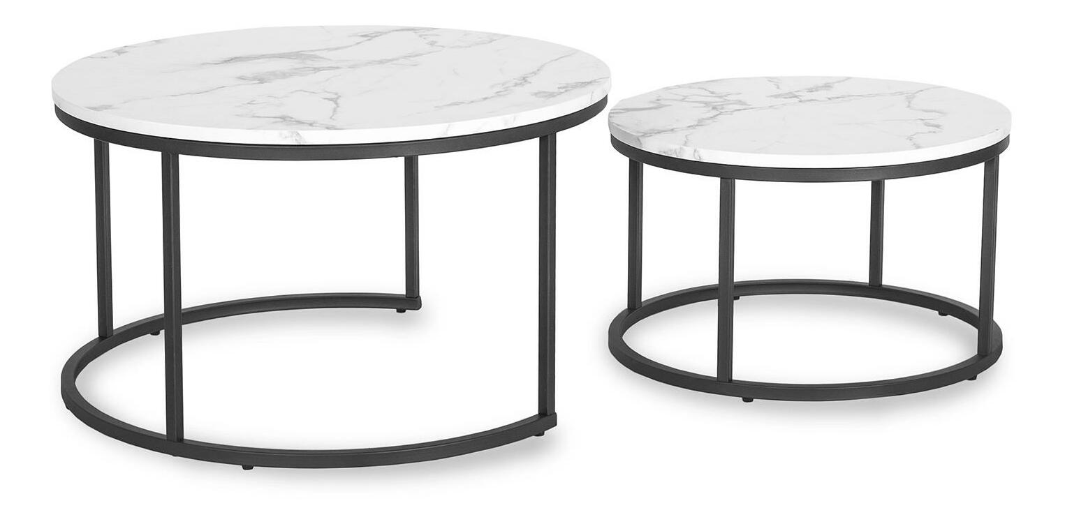 Set 2 măsuțe de cafea Delito Max (marmură alb + negru)