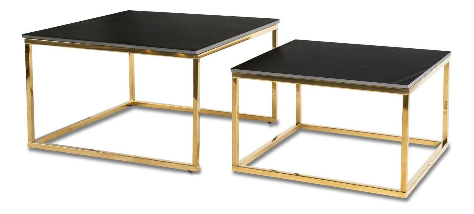 Set 2 măsuțe de cafea Texarkana (marmură negru + auriu)