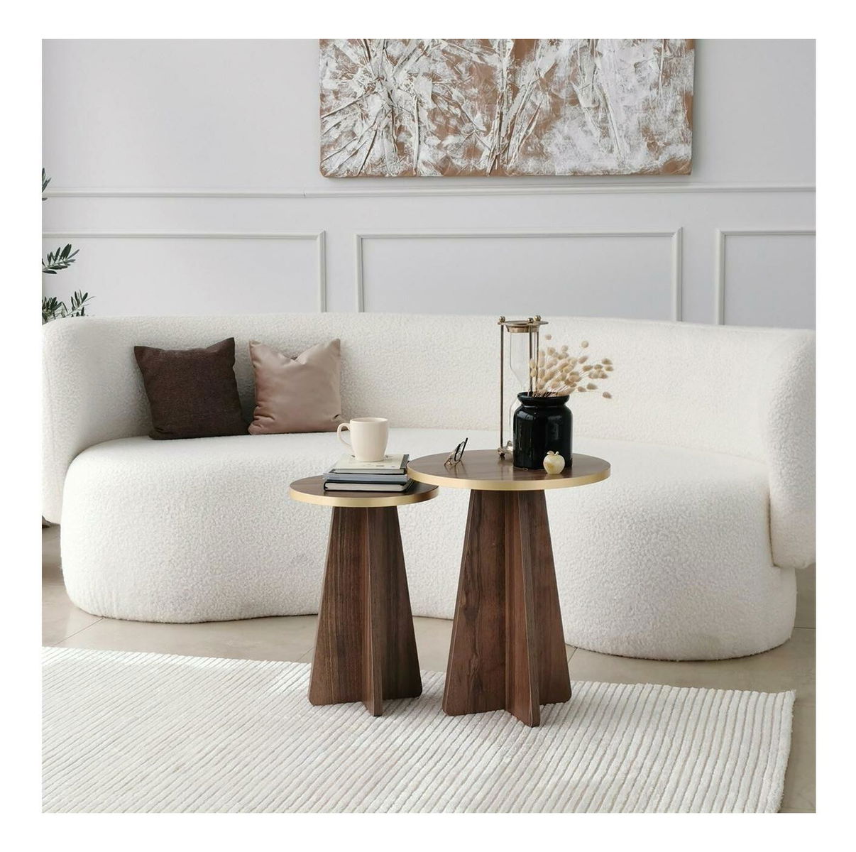 Set 2buc. măsuțe cafea Kabivo 1 (auriu + nuc)