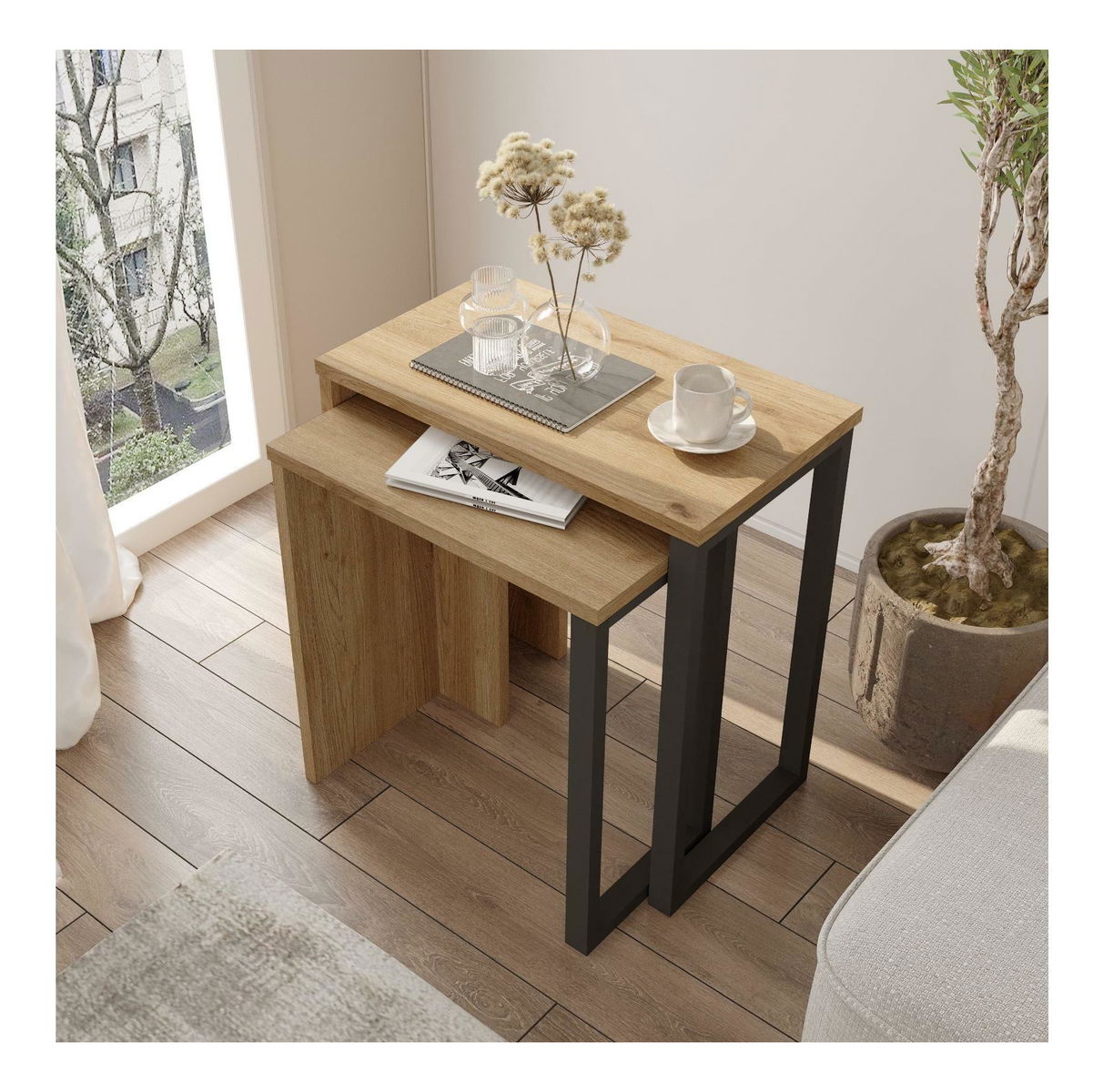 Set 2buc. măsuțe cafea Nimelo 3 (nuc + stejar)