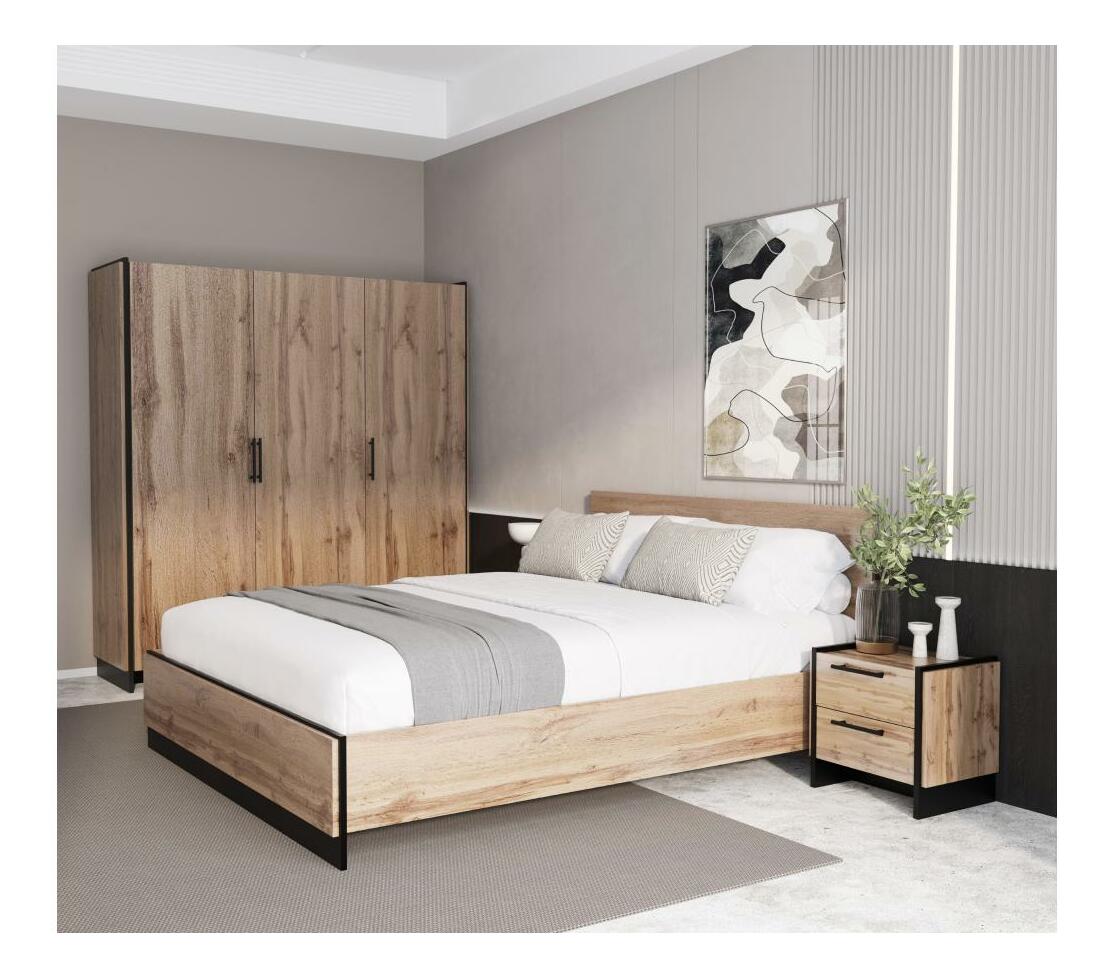 - Design contemporan: Contrastul dintre lemnul cald în nuanța stejar wotan și accentele negre conferă un aer potrivit pentru decoruri industriale, scandinave sau minimaliste.
