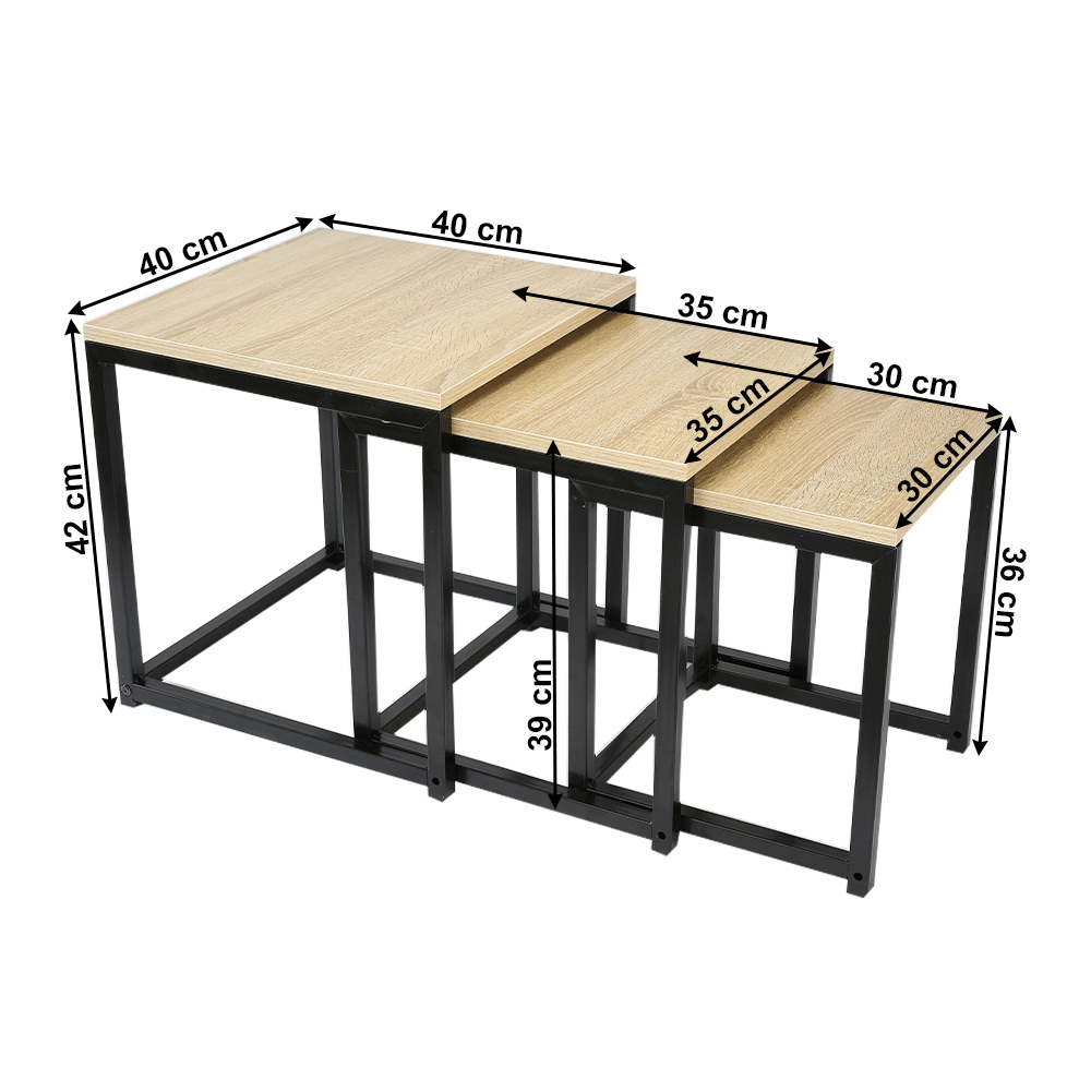 Set 3 buc. măsuțe de cafea Kastty (stejar sonoma + negru)