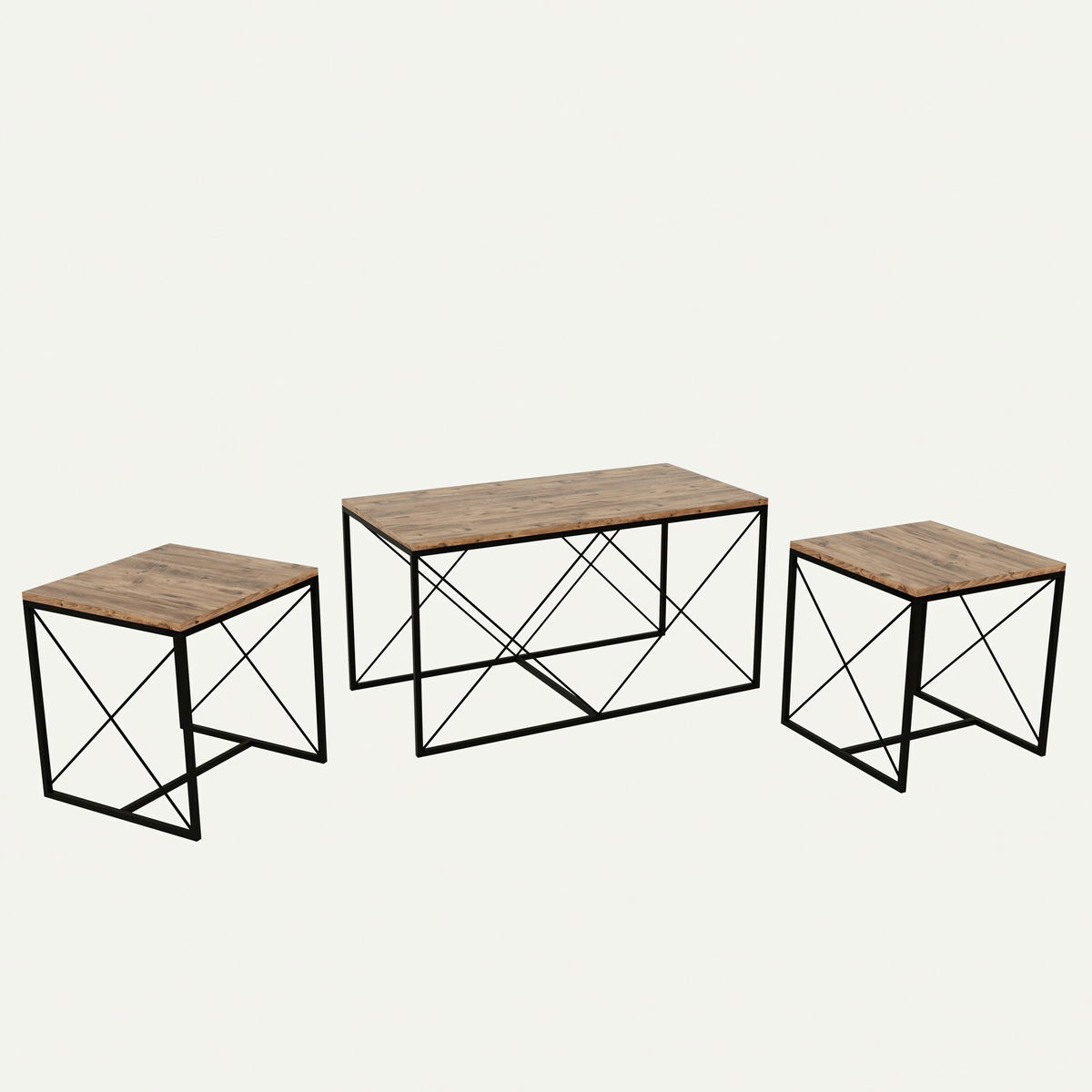 Set 3 măsuțe cafea Defenella (pin atlantic + negru)