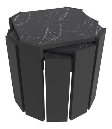 Set 3 măsuțe cafea Lorizolla (marmură negru + Negru)
