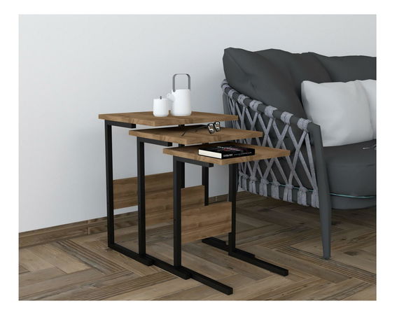 Set 3buc. măsuțe cafea Bameni (Nuc + negru)