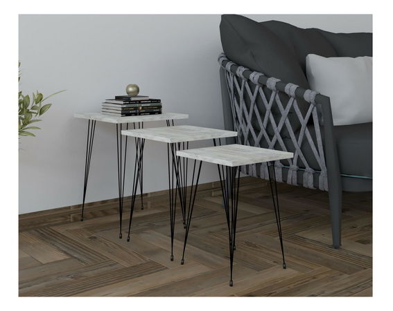Set 3buc. măsuțe cafea Pakamo (negru + cristal)