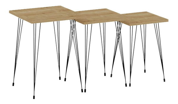 Set 3buc. măsuțe cafea Pakamo (negru + stejar zafir)