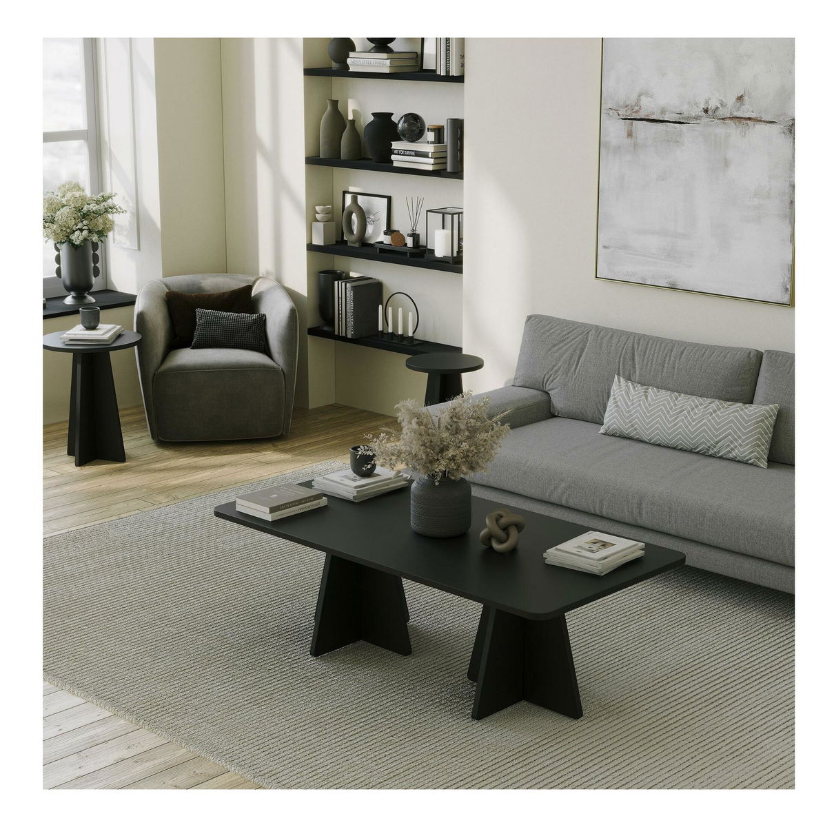 Set 4buc. măsuțe cafea Kabivo 2 (negru)