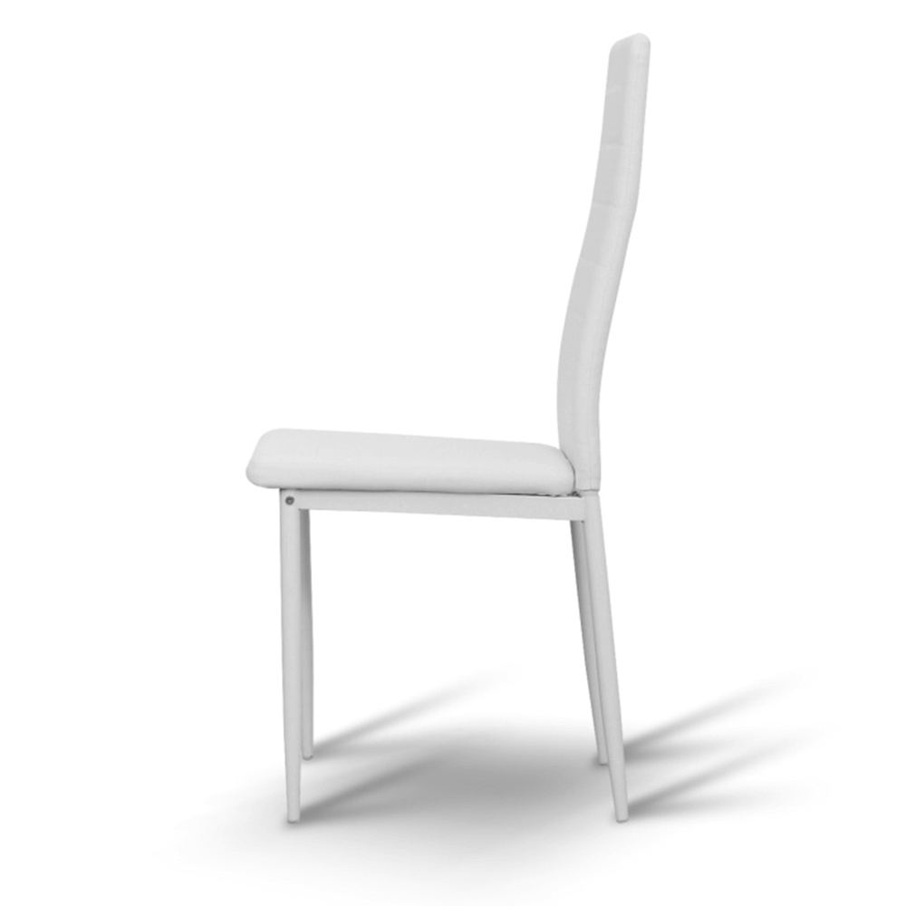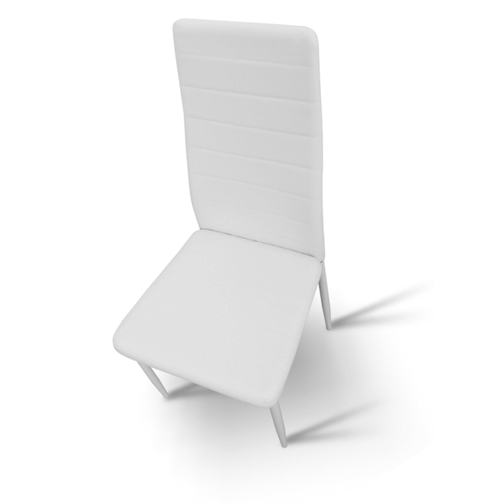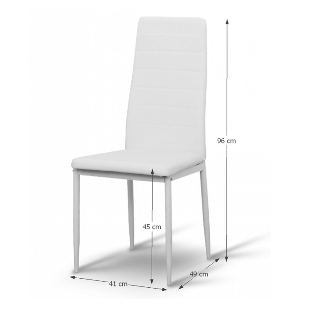 Scaun de sufragerie care ma înviora fiecare sufragerie. Cadrul este metalic și confortul este ridicat li datorită spătarului. Se livrează cu tapițerie din piele ecologică albă.
