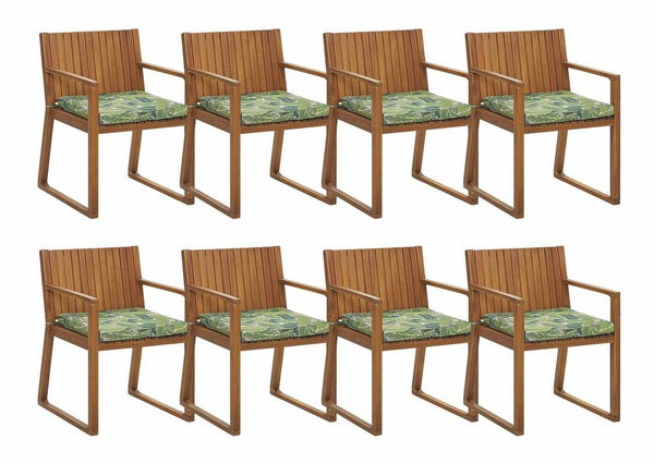 - Set 8 buc. scaune de grădină SASAN (maro deschis) (cu perne verzi)