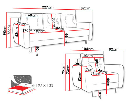 - Set canapea fotoliu 3+1 Keklat (Negru) (cu sp. depozitare)