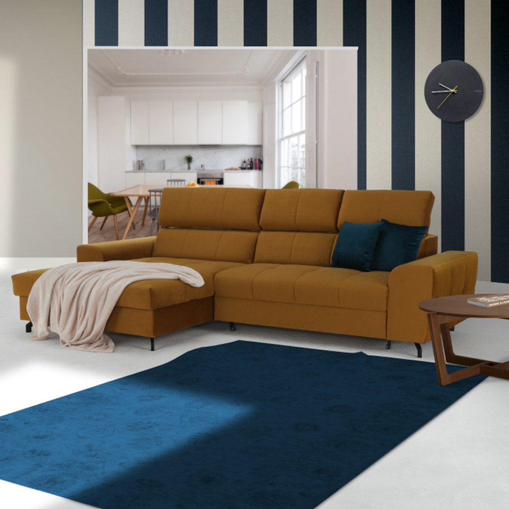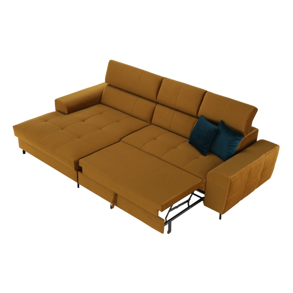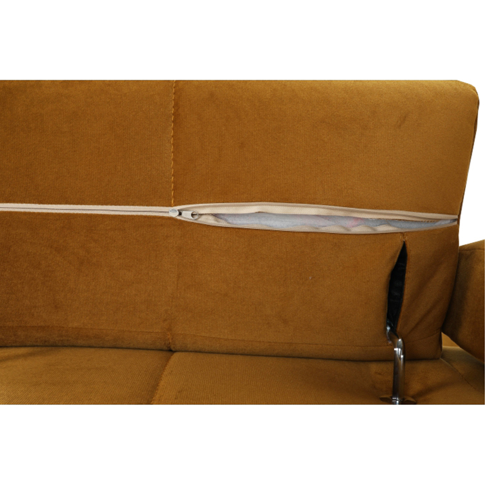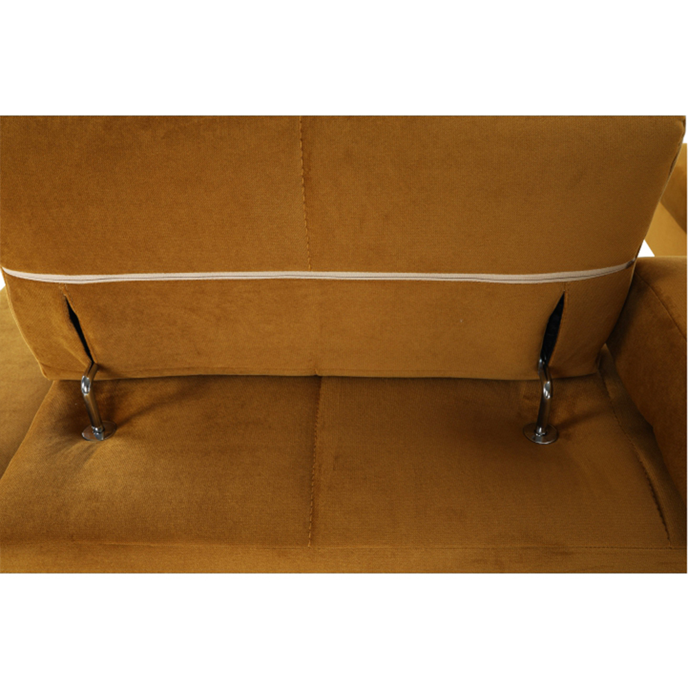 Canapea extensibilă tapițată cu stofă. După extindere are dimensiniea de 127x233 cm.